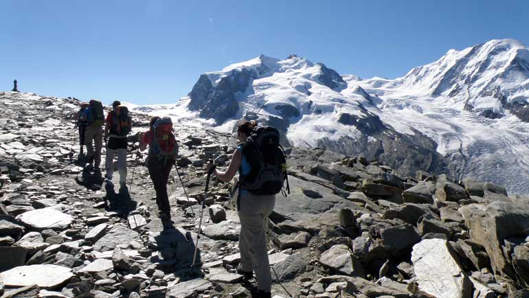 En esta ocasión, en un viaje sencillo de senderismo tendremos la oportunidad de conocer todo el macizo del Monte Rosa. Los valles de Valtournenche, con Cervinia a las faldas del Cervino, el Valle de Ayas, más al oeste y desde donde se empieza adivinar el Breithorn, el Castor y el Polux, el valle de Gressoney, desde donde podremos admirar los gigantes del Liskam, Alagna Valsesia, donde el macizo ya empieza a girar y a terminarse y finalmente el valle de Macugnaga, que ya se encuentra en la zona llamada Piamonte.